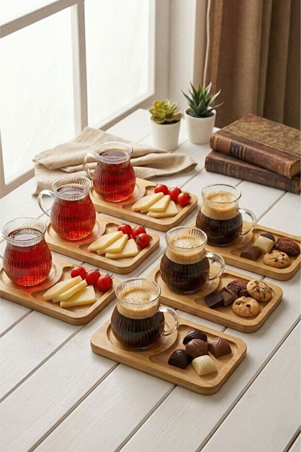 12 parça set – bambu tabaklı şık sunum