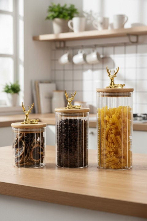 Cam Kavanoz Silikon Bambu Kapaklı Kavanoz 3’lü Set, baharatlarınızı, çay ve kahve gibi kuru gıdalarınızı uzun süre taze tutar. Silikon contalı bambu kapaklar, sızdırmazlığı sağlar ve mutfakta hijyenik bir kullanım sunar.