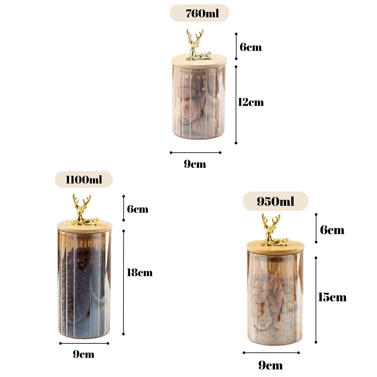 3 farklı boyutta cam kavanoz: küçük, orta ve büyük