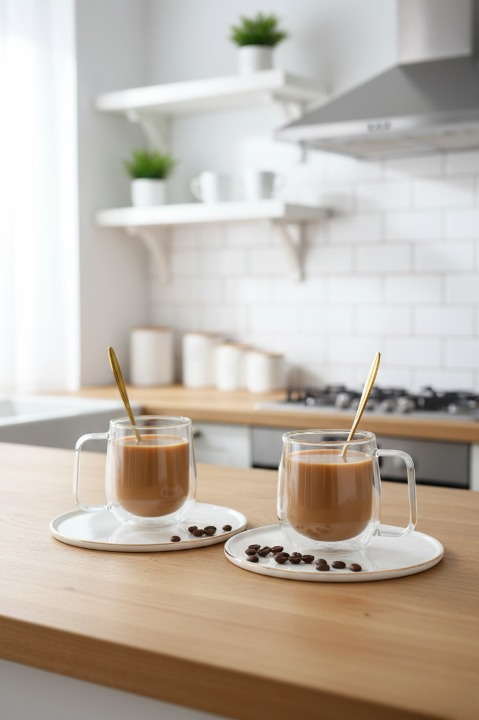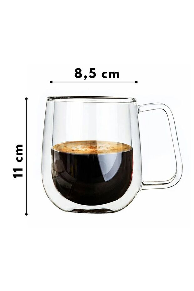 Çift Camlı Çift Cidarlı Cam Kupa 350ml Ev Ofis Fincanı Çift Camlı Kulplu Bardak 2li