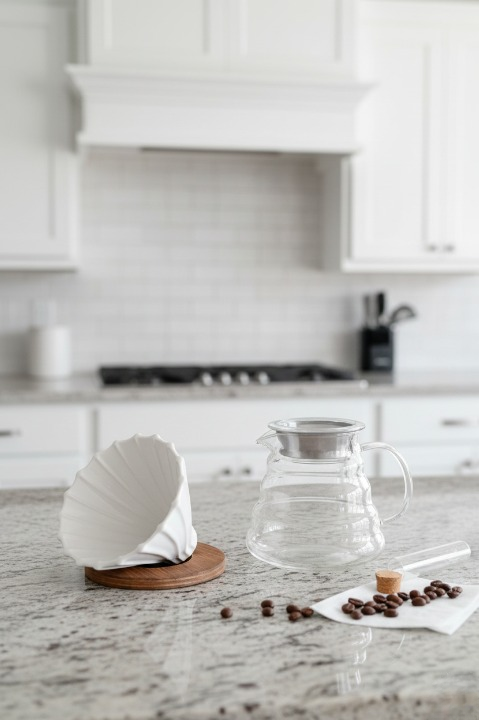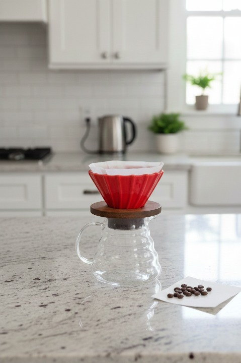 Cam materyali sayesinde şık ve dayanıklı bir tasarıma sahiptir, kahve demleme sürecini estetik bir şekilde tamamlar