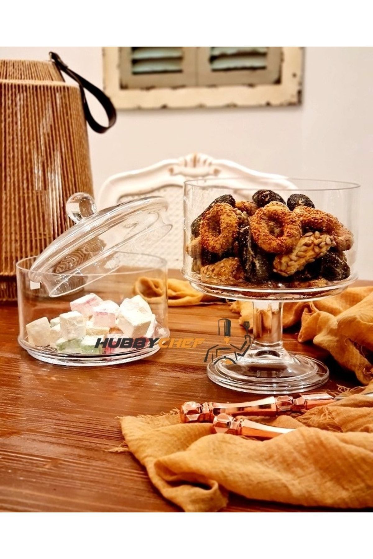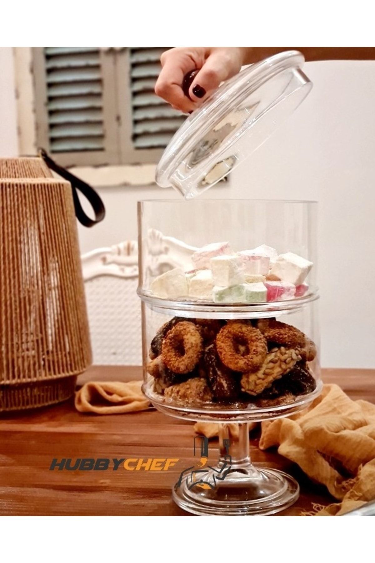 El yapımı / Hand Madekatlı cam kurabiyelik fanus ayaklı